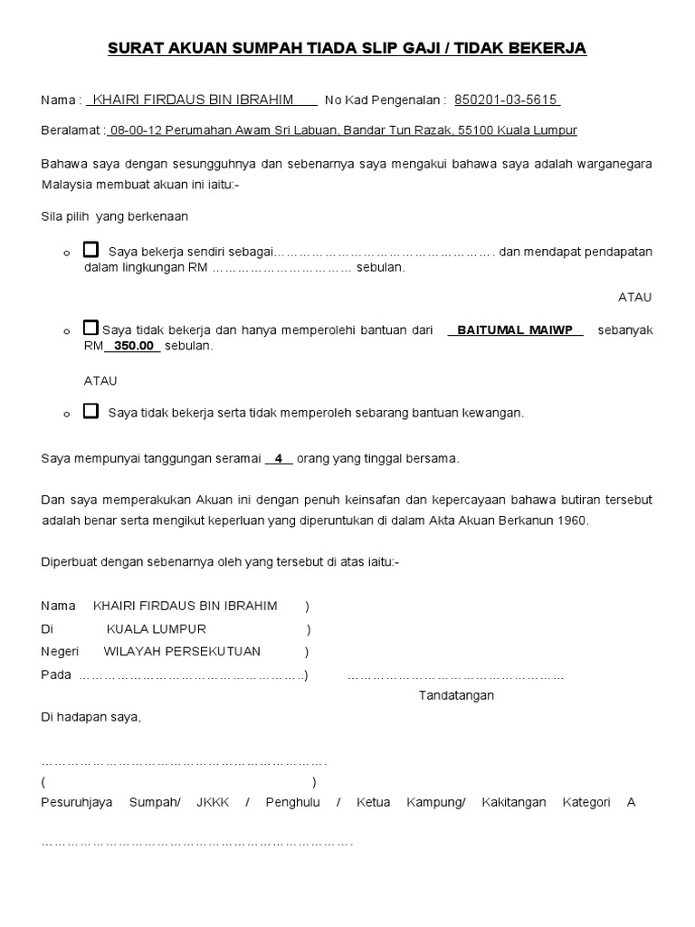 603 5521 1416 1449. 20 contoh surat akuan sumpah bagi ibu yang tidak bekerja. Contoh surat pengesahan tidak bekerja dari ketua kampung.